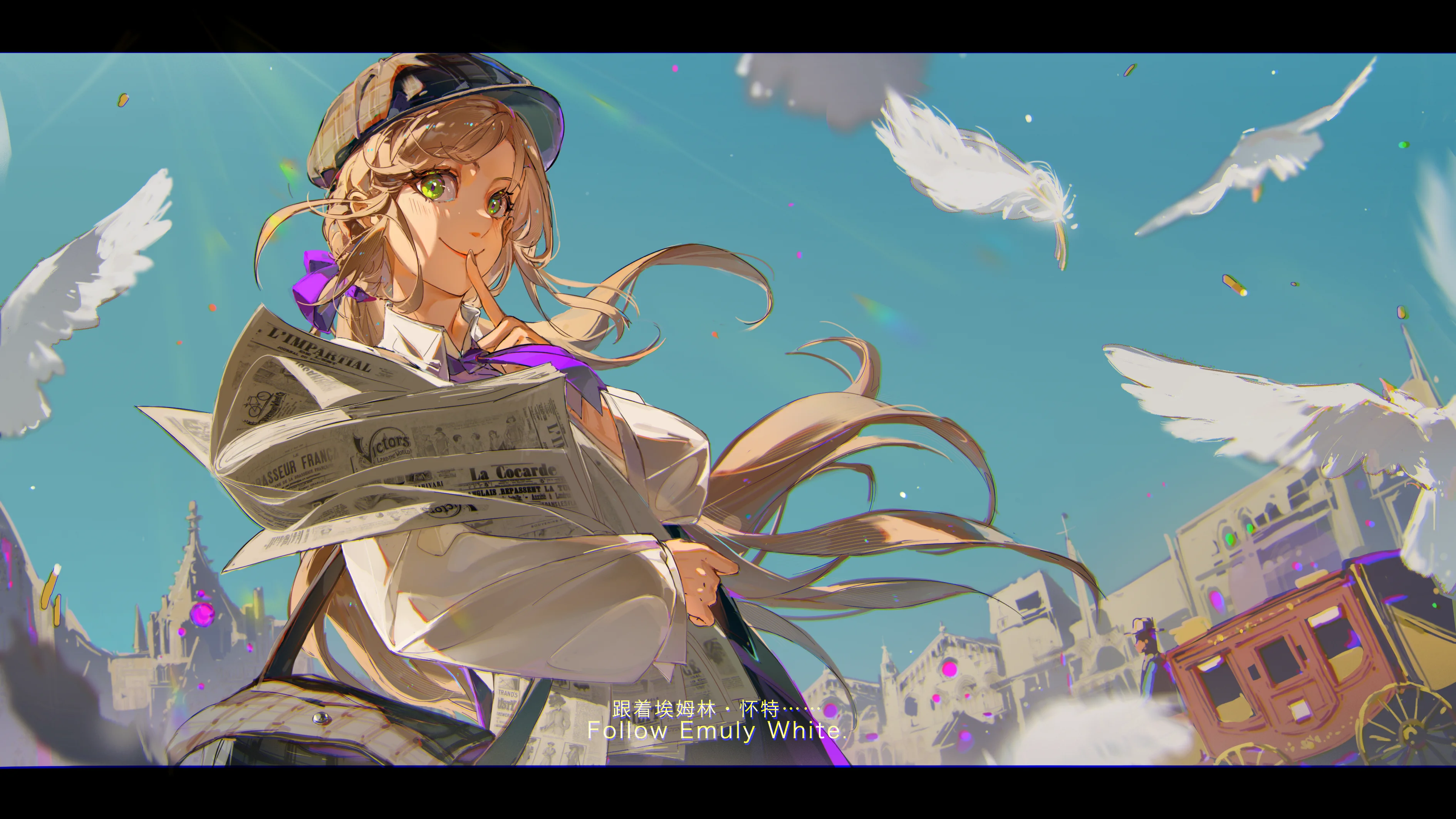 On the square, everyone stopped in their footsteps. At that holy moment, they either closed their eyes in prayer or were listening silently, regardless of whether they were believers of the God of Steam and Machinery or not. Only the pigeons that were being fed flew up and soared into the sky.