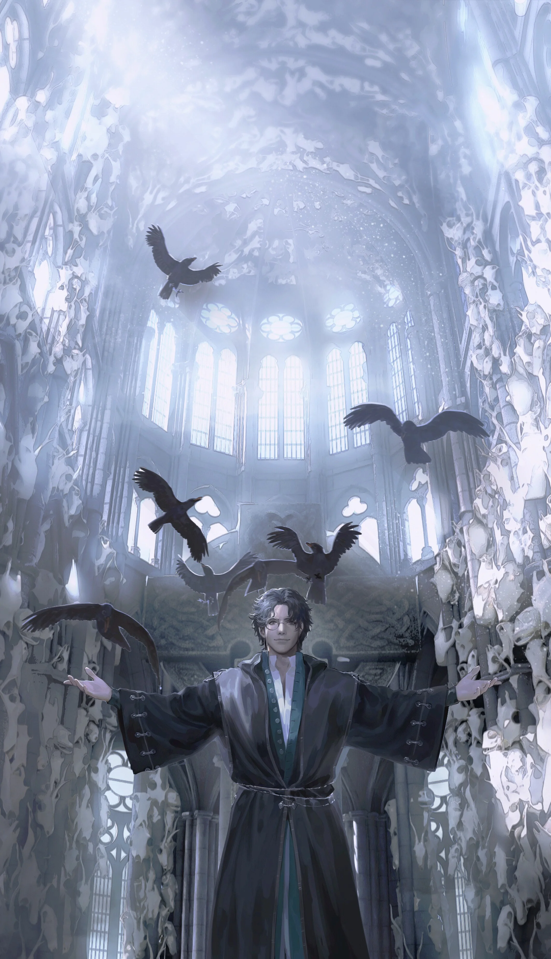 In front of the cross that was a hundred meters tall, the black-robed, pointed hat, and a monocled Amon, slowly turned around to the “opened” door.