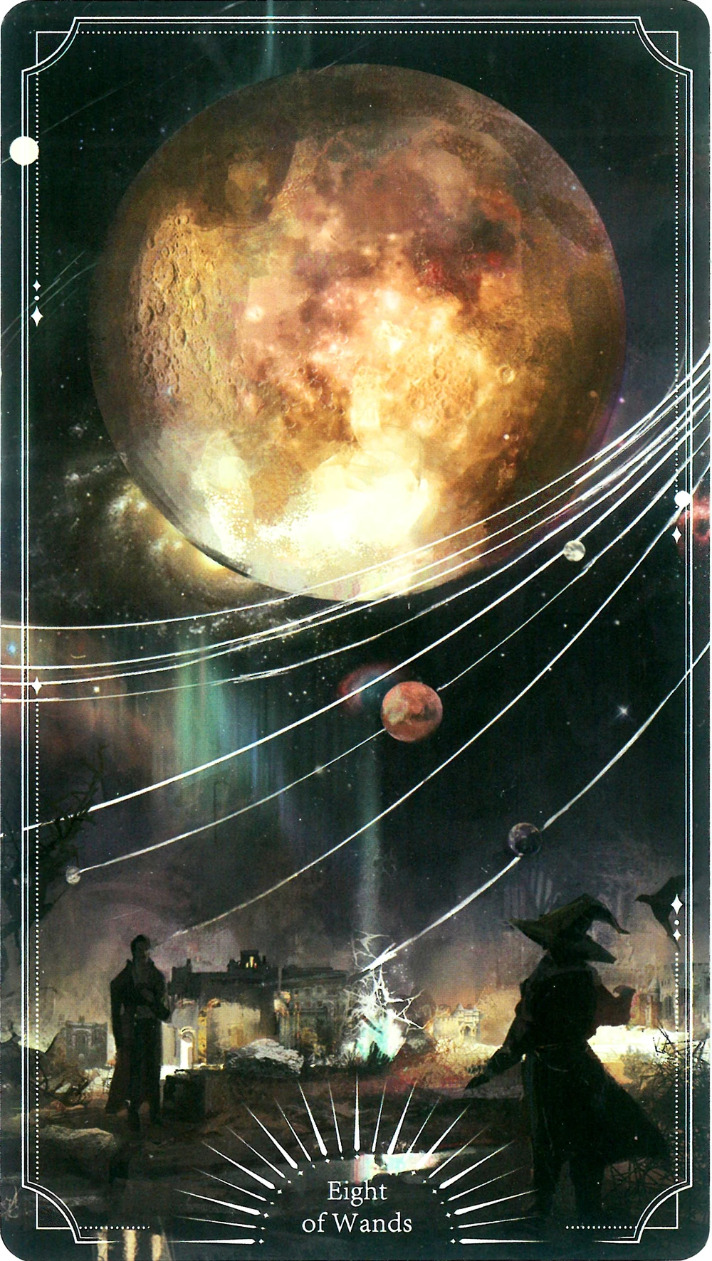 Further out in space, the Brown Star, Orange Star, Scarlet Planet, Gold Planet, and Blue Planet twinkled like the blinking of eyes.