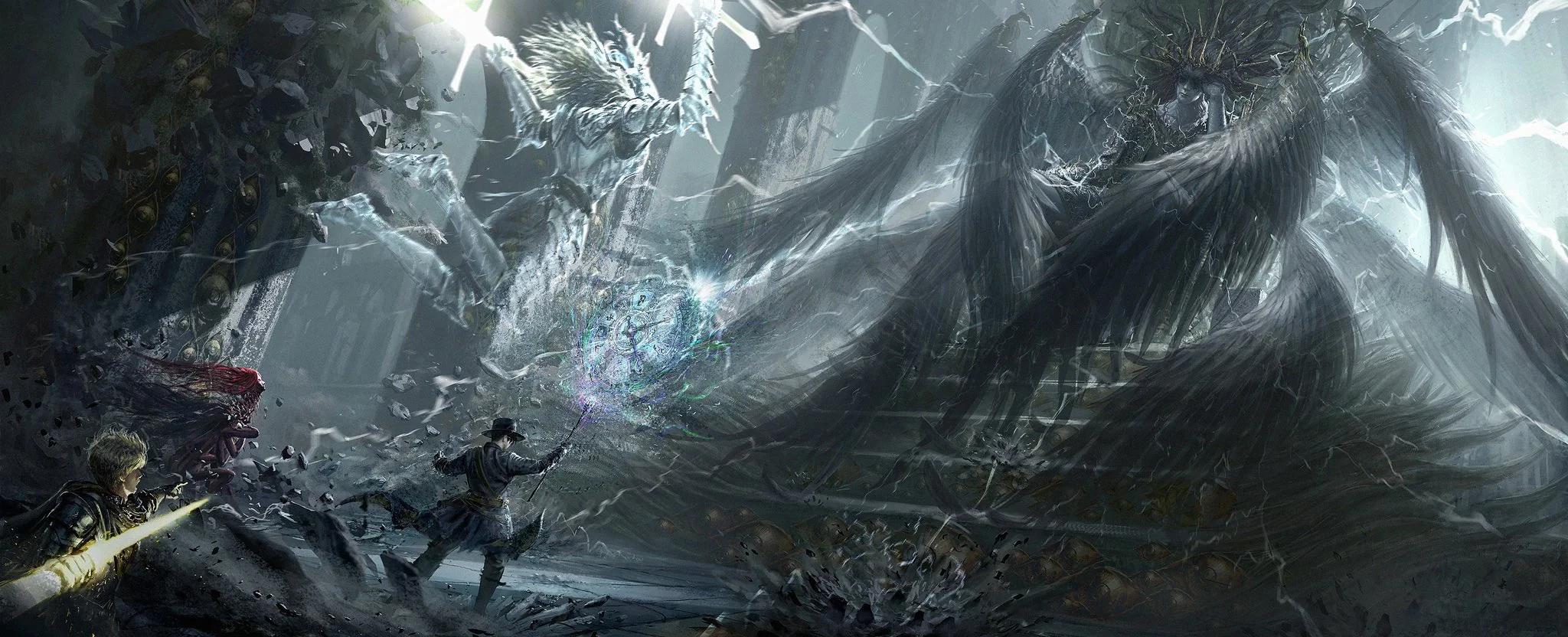 Colin Iliad straightened his body and struck out with the sword of dawn in his right hand, causing the silvery-white light to “Blink” to Sasrir’s body. As Lovia resisted the restraints of the shadow “cloak,” she got the Silver Knight evil spirit she Grazed to swing its greatsword upwards from below, bringing with it a terrifying storm formed from blobs of light. Derrick condensed a dazzling white “Unshadowed Spear,” thrusting it at the Dark Angel as it left crackling sounds in its wake.