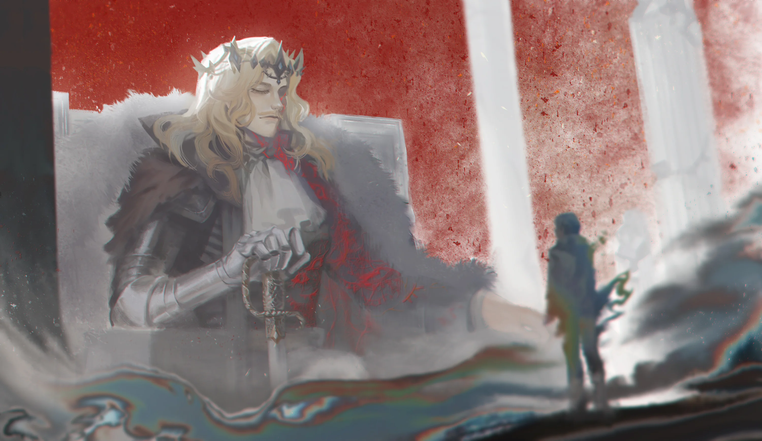 His figure quickly turned illusory, as though he had disappeared from the world, leaving only a faint shadow hovering over the iron-black throne.