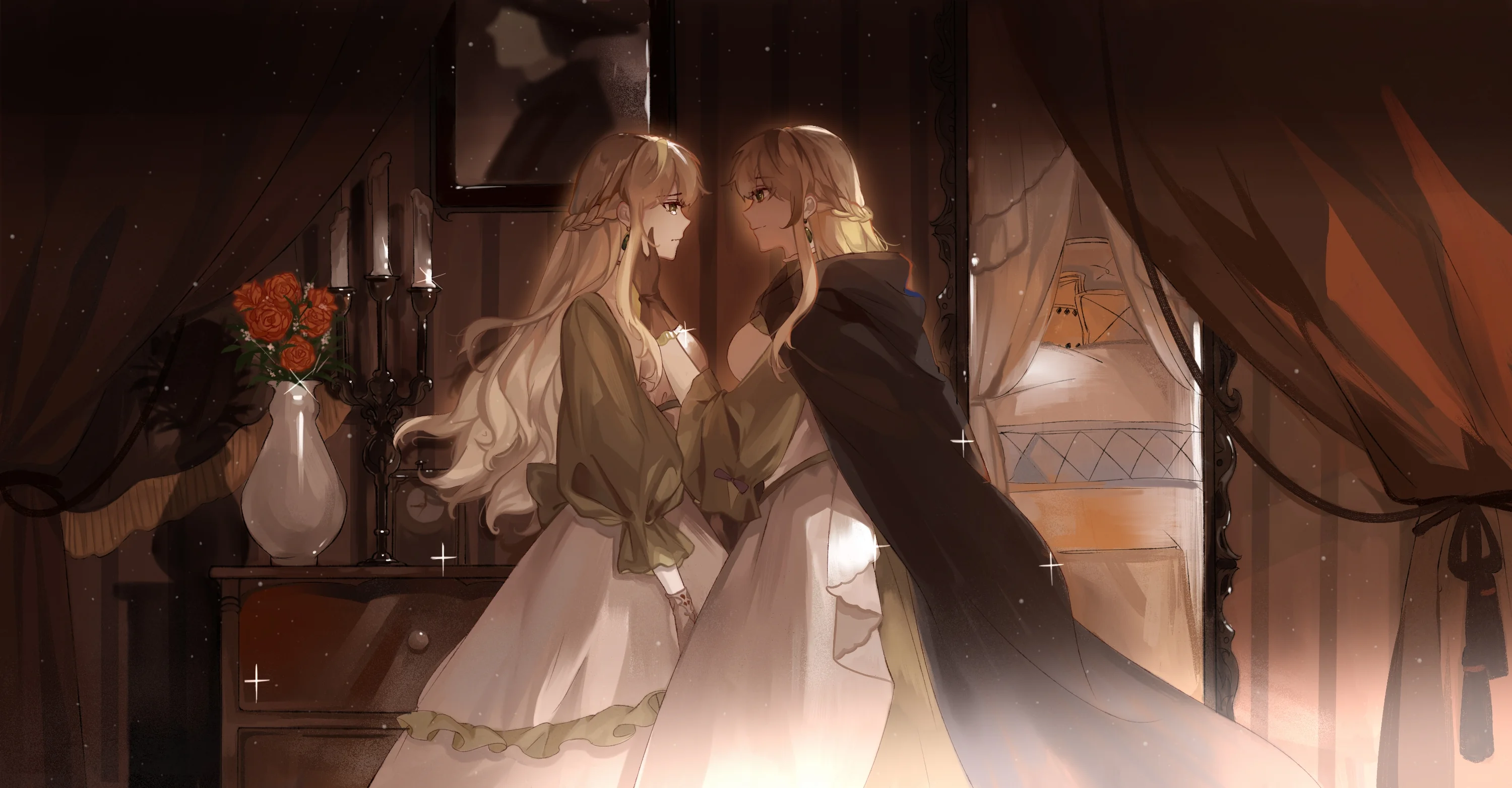 The hall below was lit with lights, and the guests came one after another to attend the ball. Lord Hall, Lady Caitlyn, Hibbert, and Alfred were already at the door.