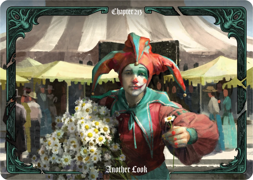 Some time later, they saw a clown running towards them. His face was painted in colorful pastels. At first, he threw a tennis ball into the air, and, while the attention of the surrounding people was drawn to the air, he conjured a flower out of thin air. It was a Seville Chrysanthemum.