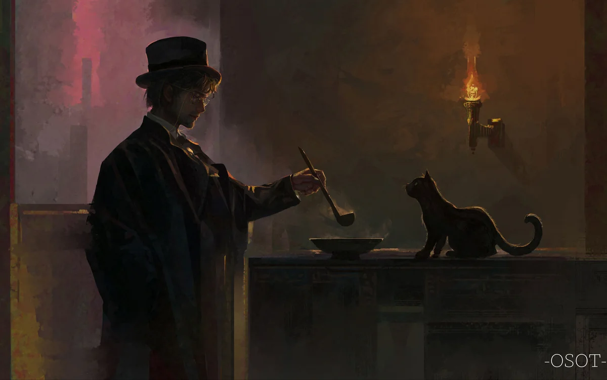 The black cat followed him in, and with an agile leap, it reached the counter. It sat beside him and watched him without making a fuss.