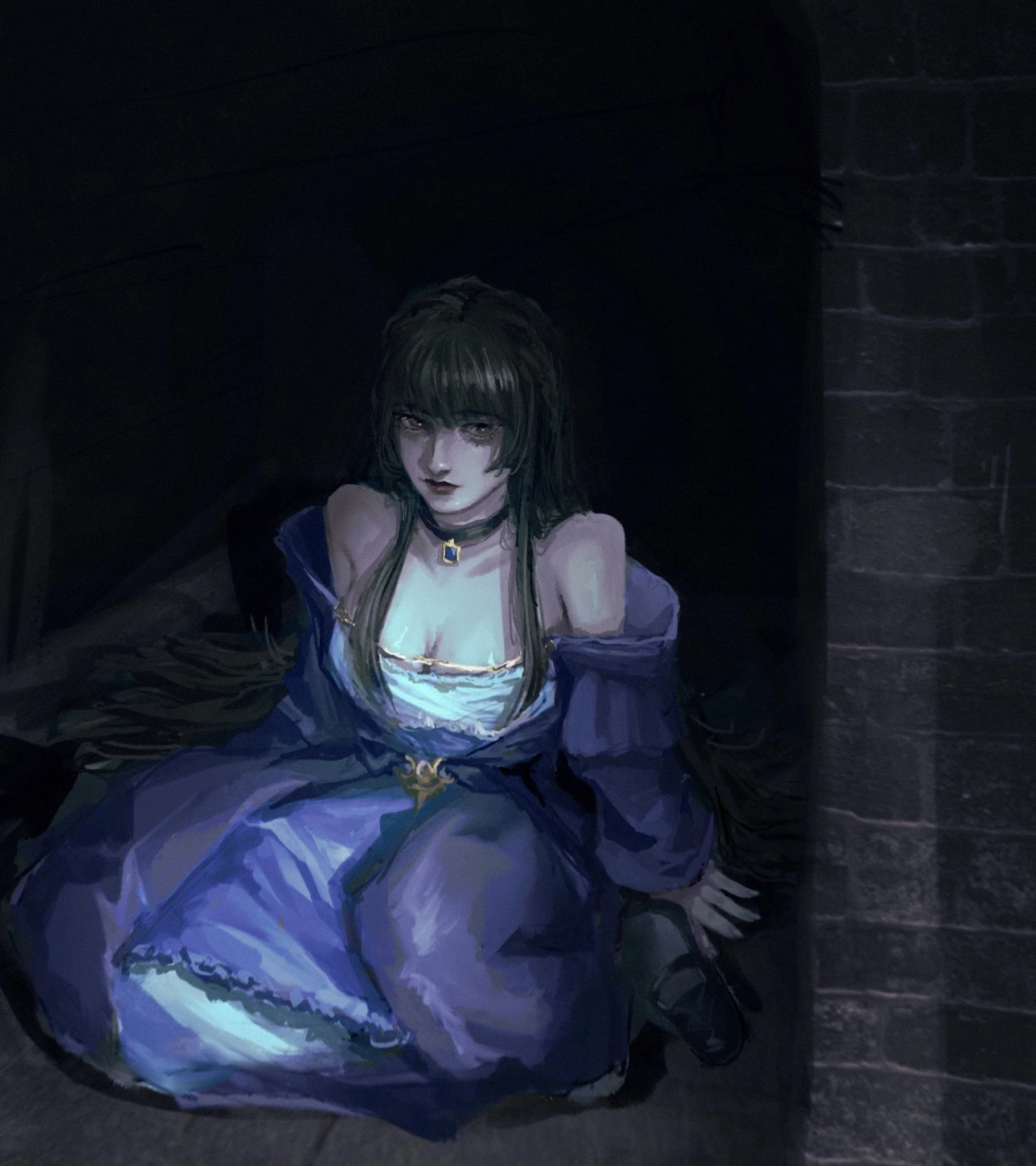 Her Shriek turned into a muffle as she took a few brisk steps to the wall. She turned into another fork before crouching down in the pure darkness.